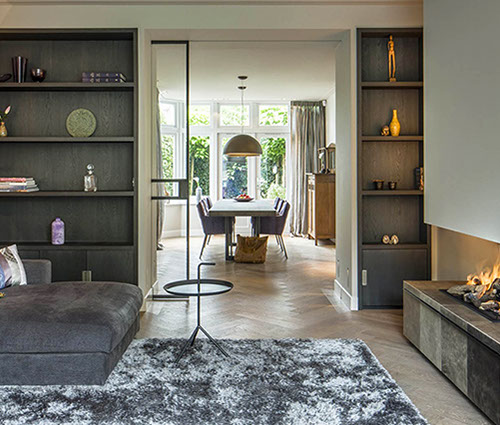 Om de hoek bij het Museumplein in het altijd levendige Amsterdam hebben we een herenhuis gerenoveerd waar je heerlijk thuis en tot rust komt. Door het plaatsen van enorm hoge ramen met moderne donkergrijze kozijnen zorgt dit voor een inval van een hoop natuurlijk daglicht en vormen de ramen tegelijkertijd ook de verbinding tussen de stad en het herenhuis.